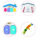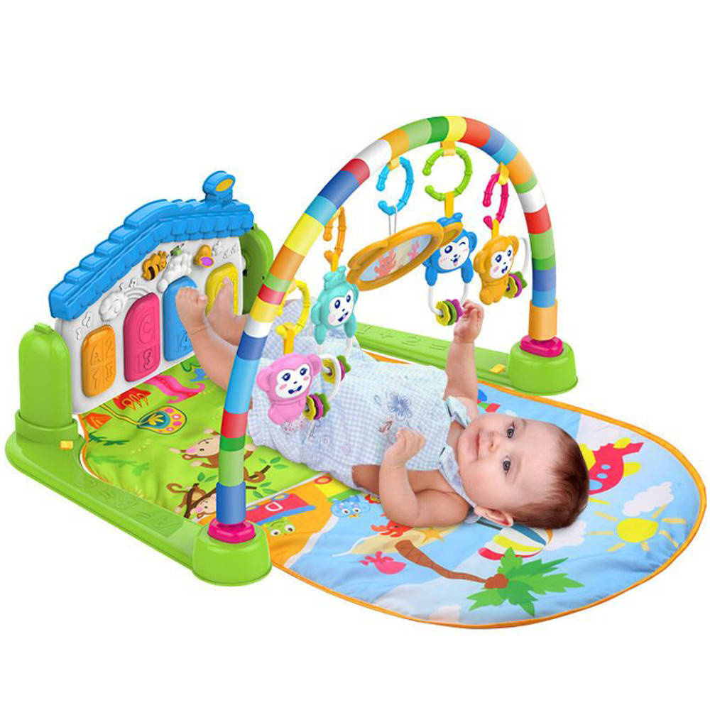 - pałąk. bobasek leży na plecach, może się bawić grzechotkami i lusterkiem, które wiszą nad nim a stópkami może przyciskać guziczki na pianinku