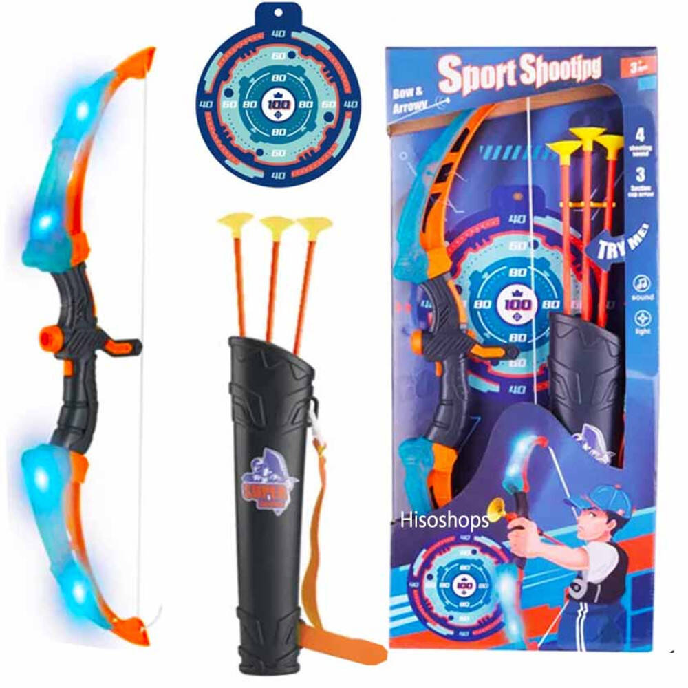 - Zestaw do nauki łucznictwa dla dzieci - łuk, strzały, tarcza, kołczan, efekty świetlne i dźwiękowe!