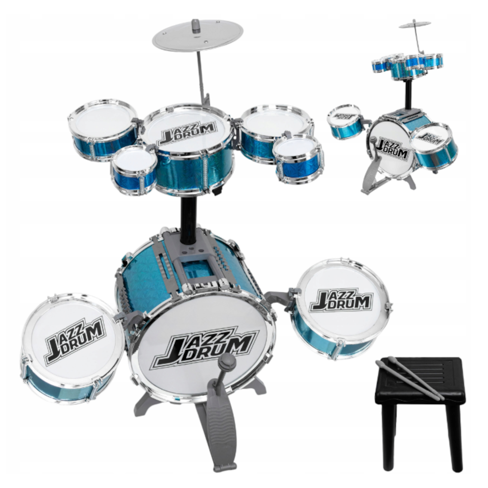 Perkusja 8-bębnowa Jazz Fashion to idealny zestaw dla dziecka, które marzy o grze na prawdziwych instrumentach. Duży zestaw obejmuje aż 8 bębnów, talerz, pedał, pałeczki oraz stabilny taboret. Realistyczny wygląd, bezpieczna konstrukcja i wysoka jakość wykonania sprawiają, że jest to doskonały wybór na prezent dla małego muzyka.