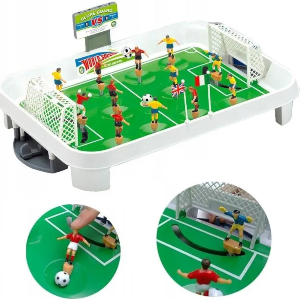 Zestaw zawiera dwie pełne drużyny po 5 zawodników oraz ruchomych bramkarzy, którymi można sterować podczas gry. Dzięki temu każda akcja pod bramką jest dynamiczna i pełna napięcia, a zdobycie gola staje się prawdziwym wyzwaniem.